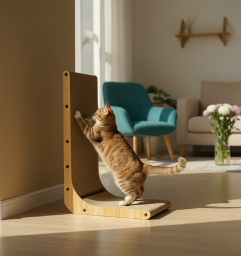 Bu tırmalama tahtası, kedinizin tırmalama içgüdüsünü doğal bir dengeye kavuşturur ve evinizin huzuruna sessizce uyum sağlar.